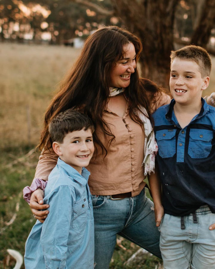 Alongside raising her two beautiful boys, Fergus and Freddie, Georgia runs a grass fed beef cattle operation in Western Victoria. The boys love doing stock work on their motorbikes, and Georgia on her horses.For more glimpses into their lives, make sure you follow along on instagram.